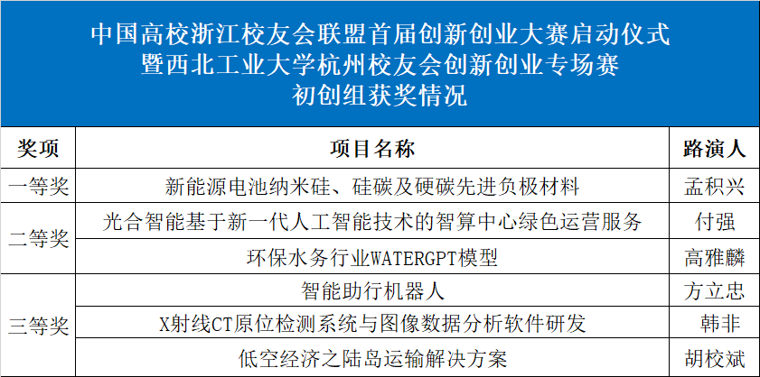 此次专场赛旨在响应关于促进创业投资高质量发展的政策号召,强化企业创新主体地位,助力科技型企业成长,为培育新质生产力提供支撑。本次大赛共有11个项目,邀请了上城资本董事长游文程,浙江中科华知科技股份有限公司董事长季玲行,西北工业大学材料学院教授/博士生导师杨勇,中关村创意经济研究院副院长,清华大学教授王中杰,九盈投资创始合伙人周朝明,汇孚资本总经理李先文,资深投资人、省人社厅、科技厅评审专家陈波,清科国投基金董事总经理全珂,安丰创业投资有限公司副总裁崔玉舒作为本次专场赛的评审专家。 上城区科技局党委书记、局长陈刚发表致辞,他表示高校校友会作为“政产学研”的桥梁纽带,是推动地方经济蓬勃发展的重要力量,中国高校浙江校友会联盟创新创业大赛为广大校友搭建了展示创新成果、实现创业梦想的舞台,有力的促进高校科技成果转化,推动产学研深度融合,为创新驱动发展注入新的活力。同时,他欢迎更多优质项目落地上城,上城区将以开放包容的姿态、优质高效的服务,陪伴大家在创新创业的道路上砥砺前行。 西北工业大学校友总会副秘书长孙武斌代表学校致辞。自2020年西北工业大学率先进行科技成果转化三项改革试点以来,专利技术作价转化,现有参股成果企业数量等成效显著。西北工业大学校友总会今年启动京津冀,长三角、大湾区等区域性企业家联谊会成立事宜,在更大范围更高层次帮助企业家校友群体对接校内外资源。他表示以这次西北工业大学杭州校友会创新创业专场赛的启动为契机,激发校友们的创新创业潜能,推动更多优秀项目的落地和转化,也期待与浙江高盟加强合作、共享资源、共同发展,为浙江的经济社会发展贡献西工大的智慧和力量。 浙江高盟执行主席、浙江高盟创新创业专委会主任、天津大学浙江校友会常务副会长陈象豹表示浙江高盟近年来活动丰富多样且影响力不断扩大,为扩大在创新创业领域影响力特成立了浙江高盟创新创业专委会,专委会秉承“联结知识创新、共创繁荣社会”的愿景,践行“让校友力量助推经济发展”的使命,目标是10年内培育10家上市公司。同时,他指出校友经济意义重大,以天大浙江校友会成果丰硕为例,浙江高盟成员众多,有望联合打造创新创业生态标杆典范,让浙江高盟成为继浙大系、海龟系和阿里系后创新创业力量的第四系。 活动中进行中国高校浙江校友会联盟首届创新创业大赛启动仪式和评审专家聘任仪式,浙江省北京大学校友会、杭州浙江大学校友会、浙江省中国科学技术大学校友会、浙江省哈尔滨工业大学校友会等60多家校友会会长、秘书长共同参与见证。 左右滑动,查看更多 大赛进入项目路演环节,本次共有十一个项目参赛,分为初创组和成长组分别评比。路演项目全方位呈现了项目概况、科研成果、商业模型、团队组成及发展潜力,评委们就创新维度、团队维度、商业维度、发展维度、融资方案、路演答辩六个方面进行评分并与路演人进行提问交流。 左右滑动,查看更多 西北工业大学杭州校友会会长、上海新迪数字技术有限公司联合创始人、董事彭维以《工业软件企业融资经验》为主题进行分享。他以上海新迪3个月完成7亿元融资的经历为例,从创业赛道、融资渠道、投资机构筛选、资金预算、融资筹划、项目规划、与投资人沟通、资料准备等多个维度分享了融资经验,这也是中国工业软件行业最大的股权融资之一。 中航国际原副总经理、中航工业科技委原委员,浙江西子航空顾问杨春生以《从通用航空到低空经济》为题,从低空经济与通用航空的异同、低空经济产业链、解决天空问题、空城管理下放试点、关键技术盘点等多方面进行分享,同时,他也指出低空经济源于通用航空,自2024年初横空出世几乎一夜之间火遍全国,但要成为经济业态的根本问题是要能更经济、更便捷地飞起来,广泛应用之前必须把飞行以及飞行器的安全性作为重中之重考虑。 颁奖典礼浙江省哈尔滨工业大学校友会会长刘伟、杭州市科创集团党支部书记、总经理曾维启为本次专场赛初创组获奖项目颁奖。浙江高盟执行主席、华东师范大学浙江校友会会长祝炜平,安徽大学浙江校友会会长邵龙河为本次专场赛成长组获奖项目颁奖。 左右滑动,查看更多 汇孚资本总经理李先文代表评审专家对本次专场赛进行总结点评。本次比赛项目质量非常高,专业性很强,项目内容特别丰富,他分享了项目投资人与项目创始人的关系,并建议企业提升技术价值、商业价值、资本价值,也鼓励企业家为国科研、砥砺前行。 浙江高盟创新创业专委会执行主任、西北工业大学杭州校友会副会长、西北工业大学杭州校友企业家联谊会会长方立忠进行总结致辞。西工大杭州校友企业家联谊会自 2022 年 3 月成立以来,组织多场座谈会与讲座,开展两届 “华秦杯” 创新创业大赛并取得佳绩,还与多地建立合作关系推动校友科技项目落地。此次西工大杭州校友会率先开启,浙江高盟创新创业大赛专场遴选的路演项目集中于 AI 技术、新能源等领域,符合创新方向且要求创业者具备多种能力。浙江高盟将不定期组织专场路演并形成年度大赛,打造创新创业新品牌,构建高校校友会联盟创新创业新生态,最后以 “创新无止境,创业在于行” 激励大家携手共创佳绩。
